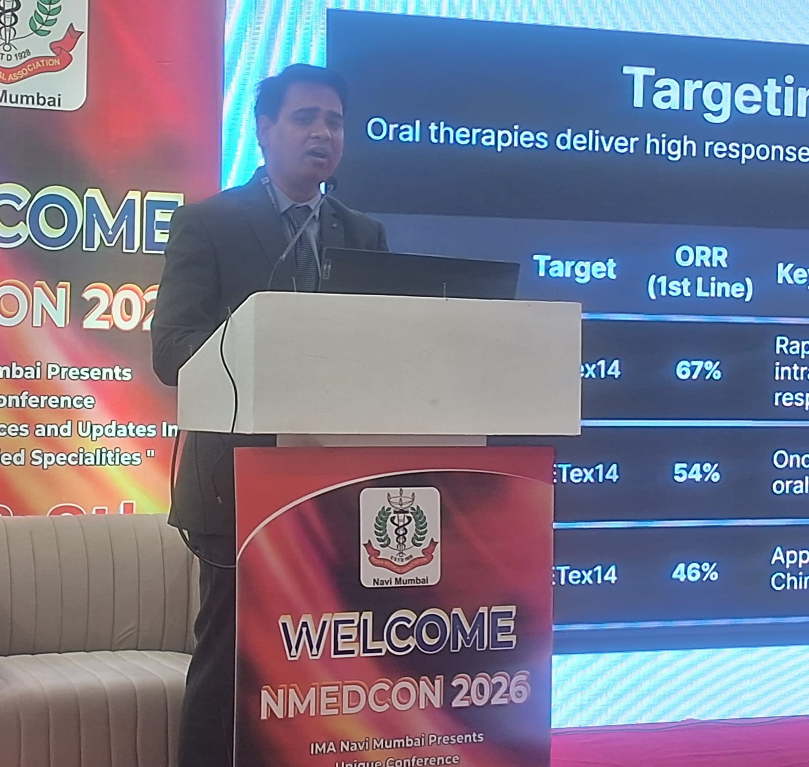 Talk emphasizing precision oncology in lung cancer at NMEDCON 2026, held on 7th February 2026 at the IMA Navi Mumbai event.